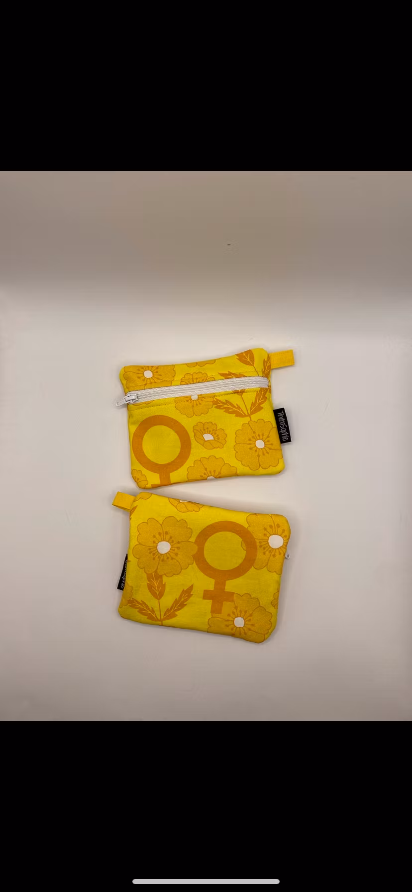 Liten börs sydd i dubbelt tyg. Storlek ca 13x11 cm.