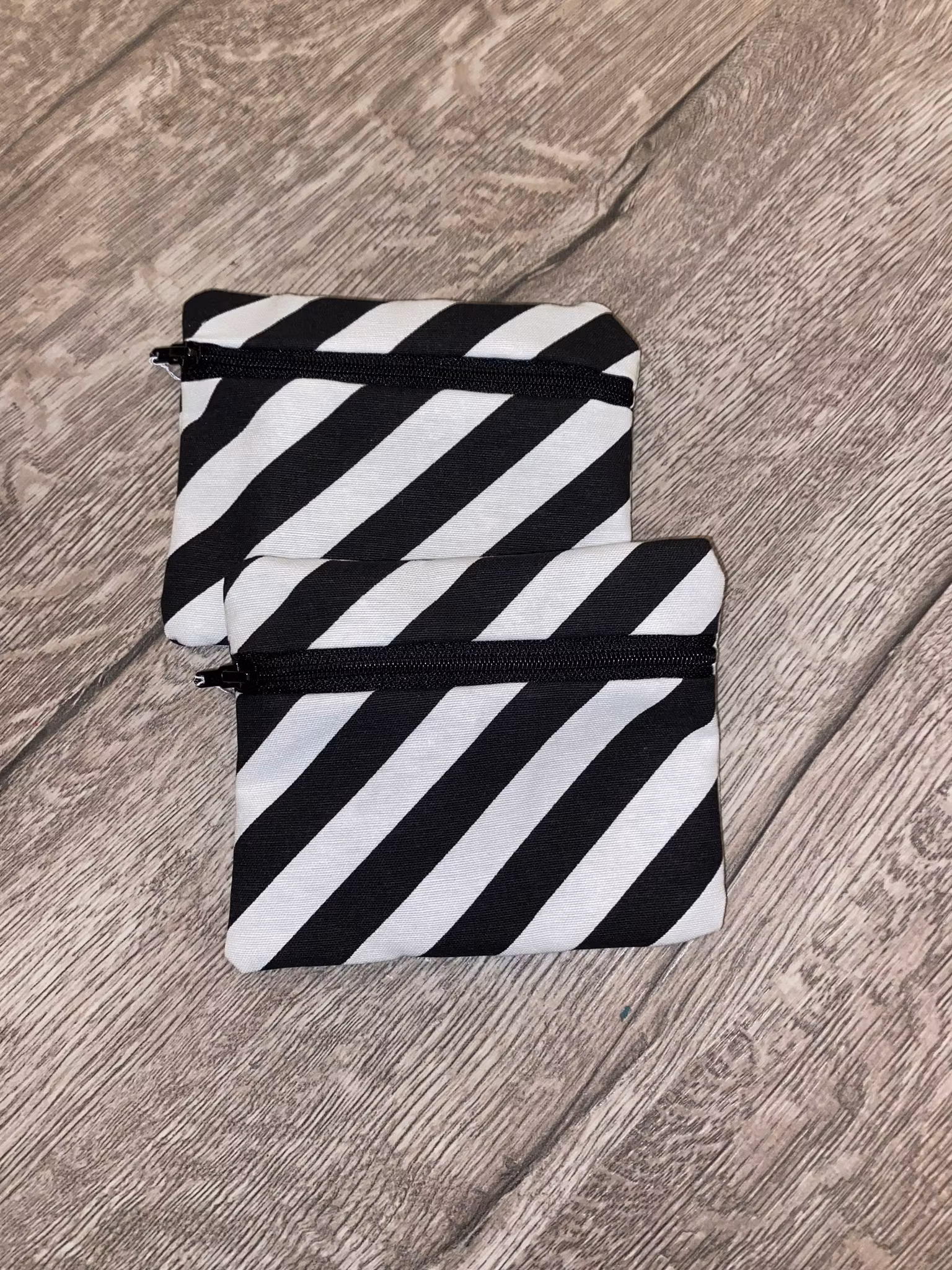 En liten börs i ett lite tjockare bomullstyg i svart och naturvitt. Storlek ca 13x11 cm.